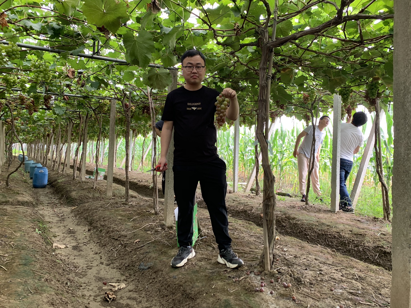 來到葡萄園,看著一串串青的、紫的顆粒碩大的葡萄,沉甸甸地掛在枝藤上,透著喜人的光,大家都迫不及待地開始了跟它們的親密接觸。提箱子,轉動剪刀,剪下一串串晶瑩剔透的葡萄,品嘗這個季節獨屬的甜蜜。大家在歡聲笑語中體驗采摘的樂趣,員工們邊摘邊吃,品嘗著不同品種的美味。最后,每位員工都采到了自己精心挑選的葡萄,滿載而歸。