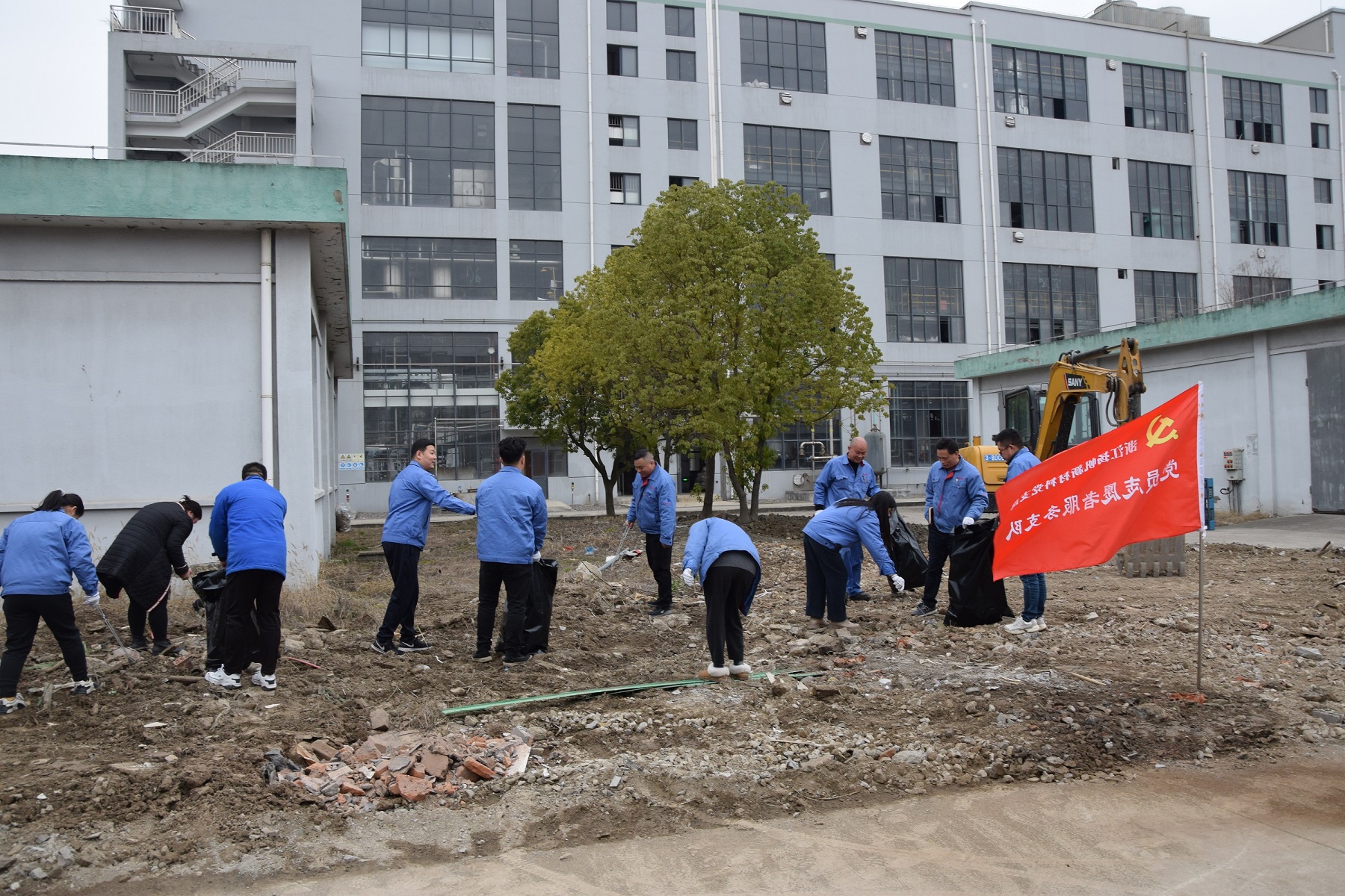 會后,黨員干部開展了美化廠區(qū)先鋒志愿活動。