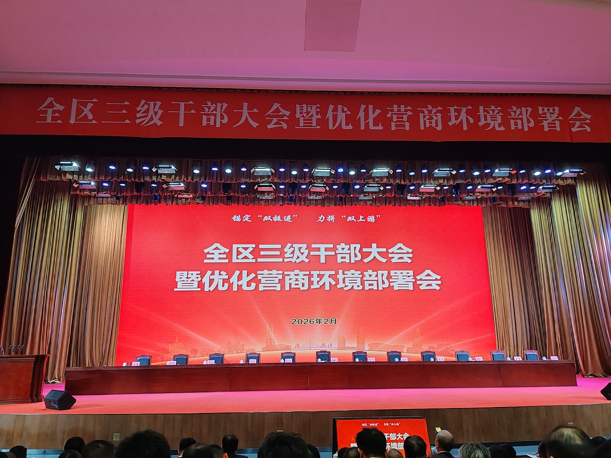 2月26日下午,全區(qū)三級干部大會暨優(yōu)化營商環(huán)境部署會召開,會議錨定“雙挺近”、力拼“雙上游”,表彰先進(jìn)集體與個人,吹響奮進(jìn)“十五五”號角。